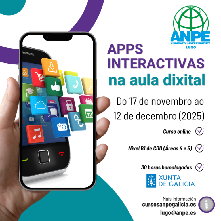 Actividade de formación a distancia para coñecer, integrar e implementar un conxunto de aplicacións que servirán para acadar unha utilidade práctica e efectiva no desenvolvemento do noso traballo como docentes, así como no fomento da participación activa do alumnado. NIVEL B1 (áreas 4 e 5) de Certificación Dixital Docente.